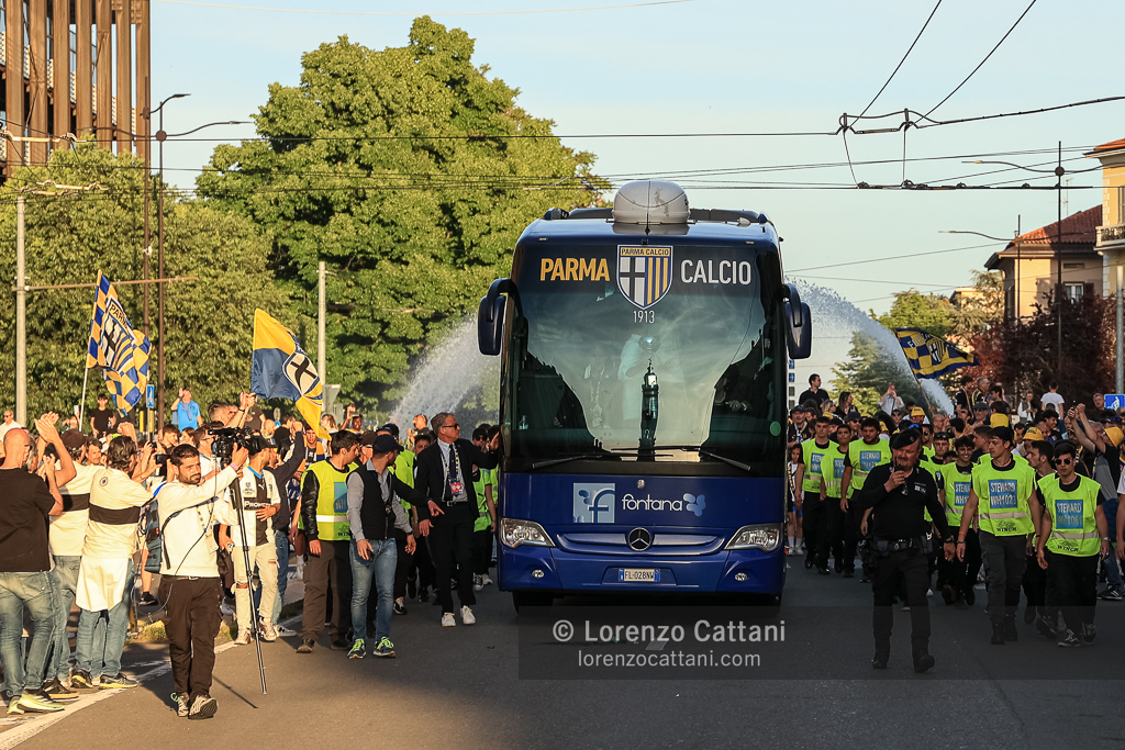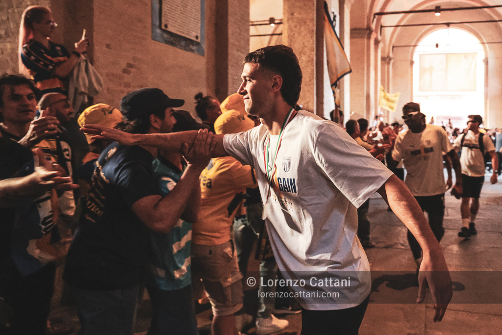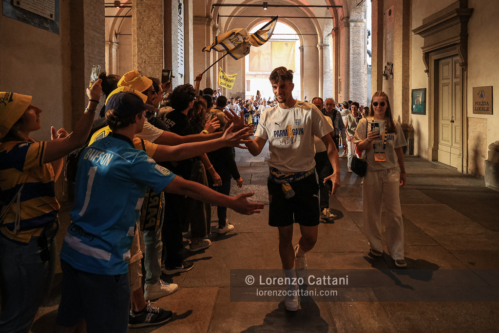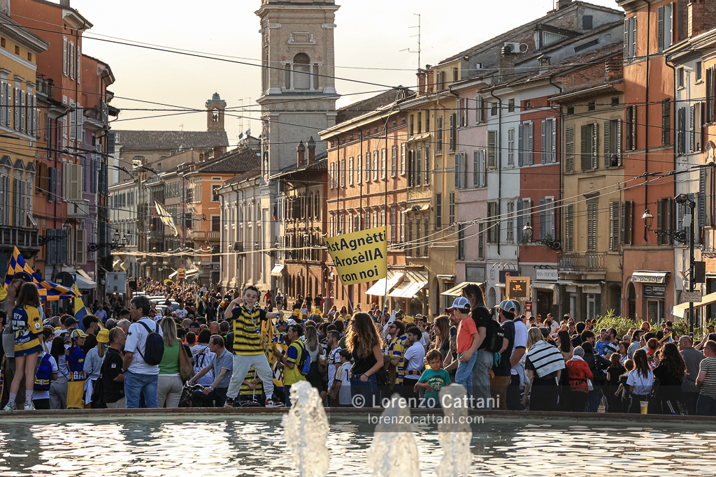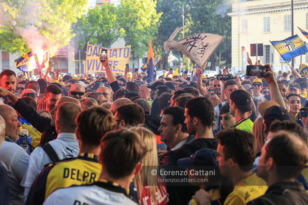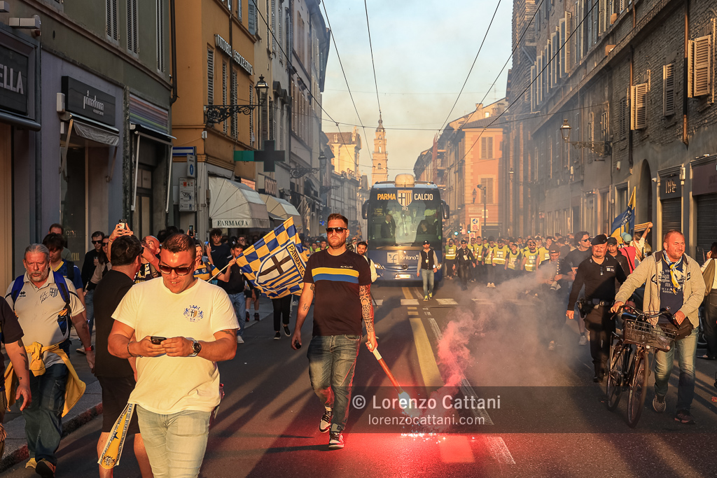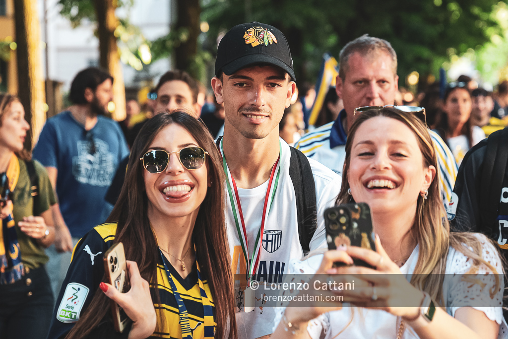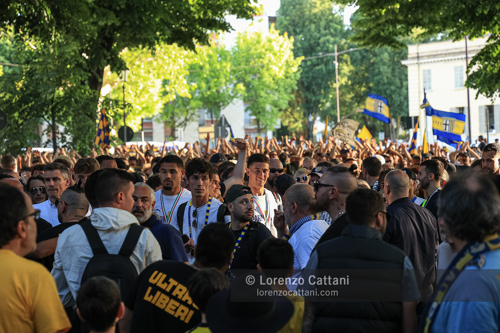 Nel post gara di Parma-Cremonese il corteo dei tifosi è partito a piedi dallo Stadio Tardini insieme alla squadra; i giocatori sono poi saliti in pullman a Barriera Repubblica e sono arrivati all’«abbraccio» in Piazza Garibaldi, davanti a quasi 10.000 tifosi.