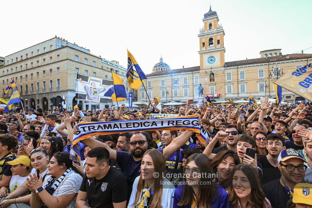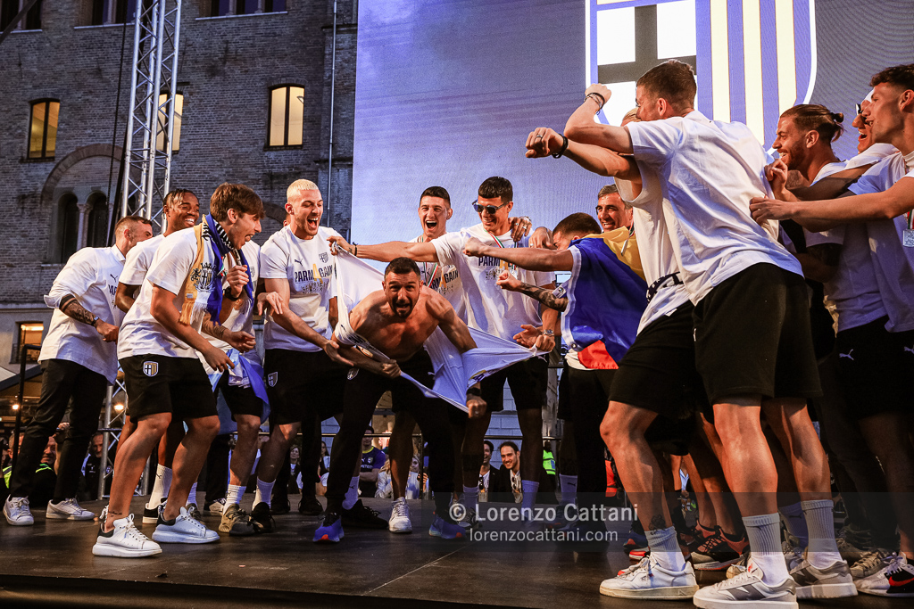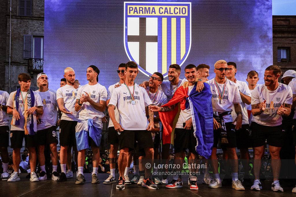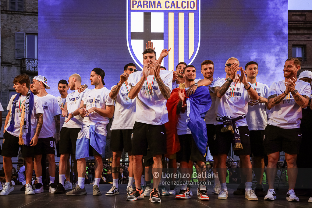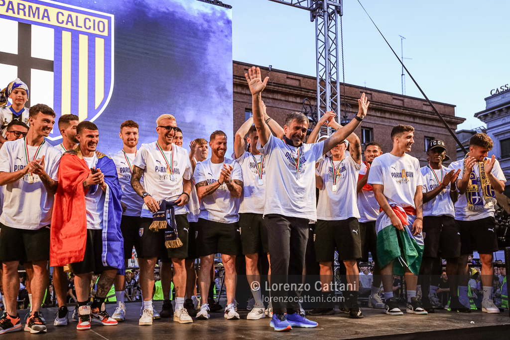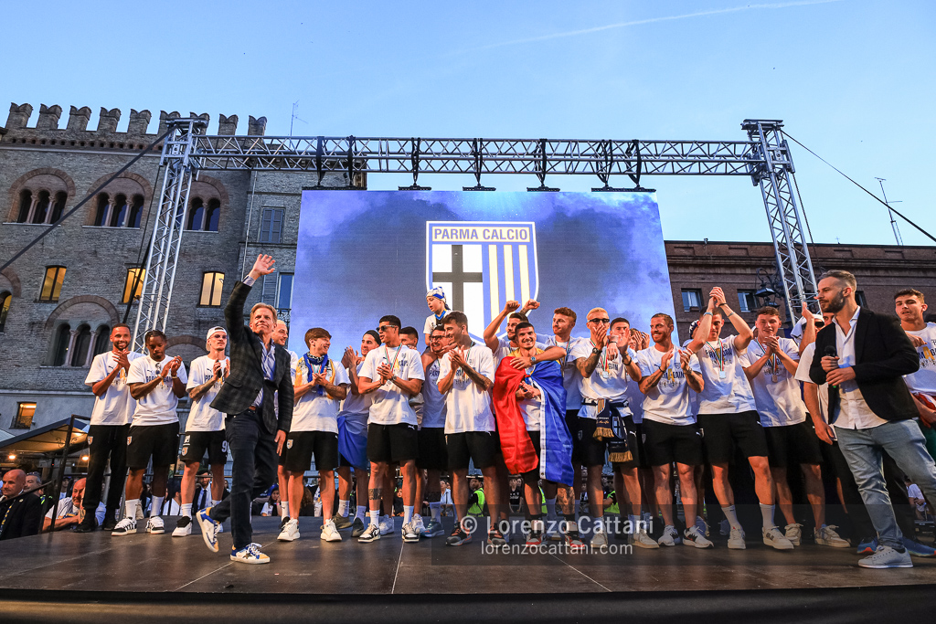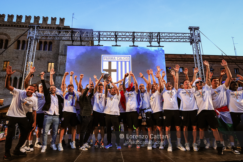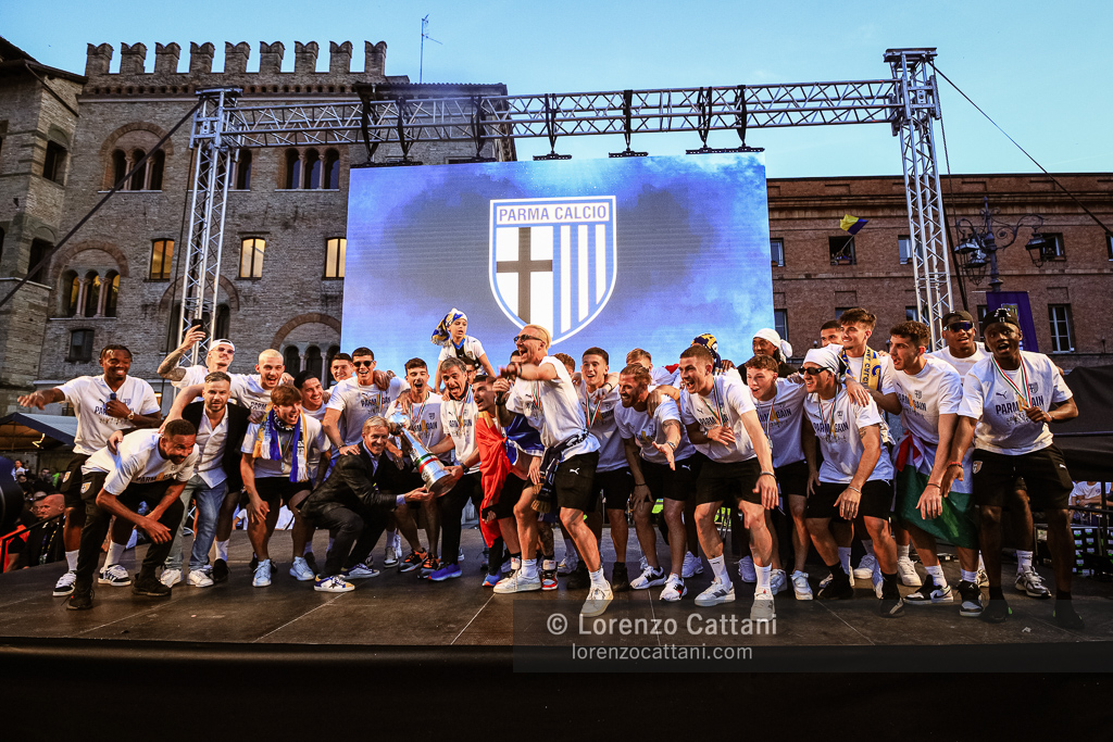 Dopo la Serie A acquisita matematicamente mercoledì 1 maggio 2024 e un primo accenno di celebrazioni, ecco la festa grande riservata al Parma Calcio, che ieri si è conquistato anche coppa e titolo di campione di Serie B.