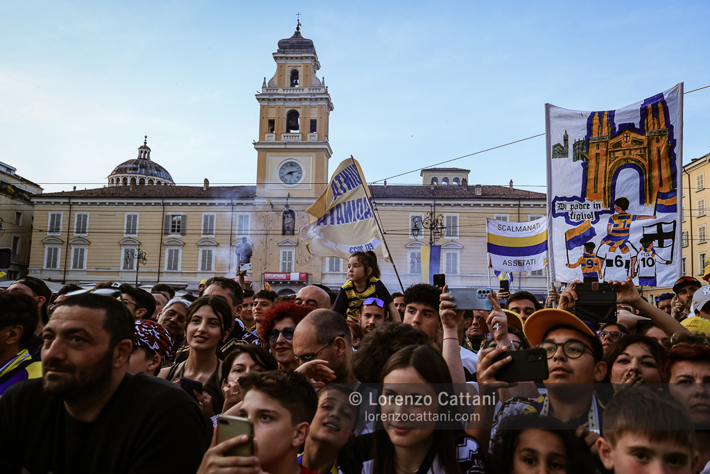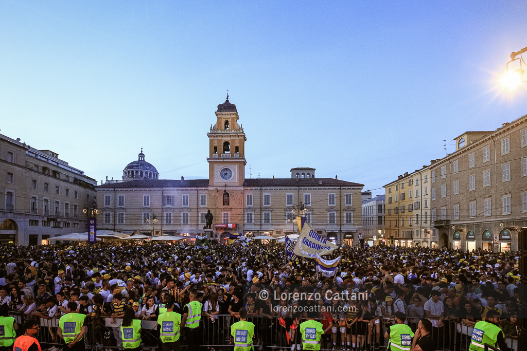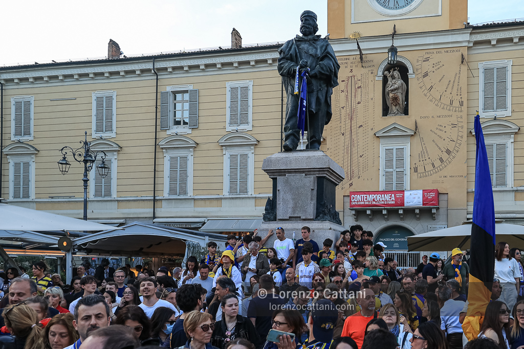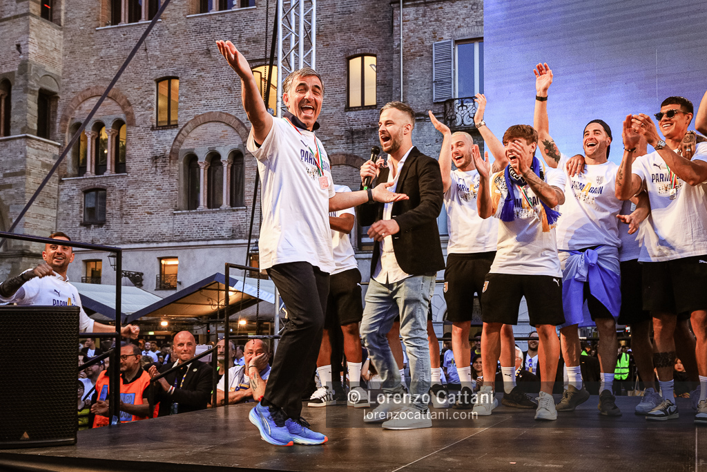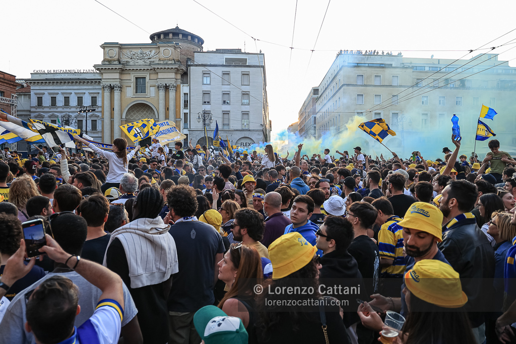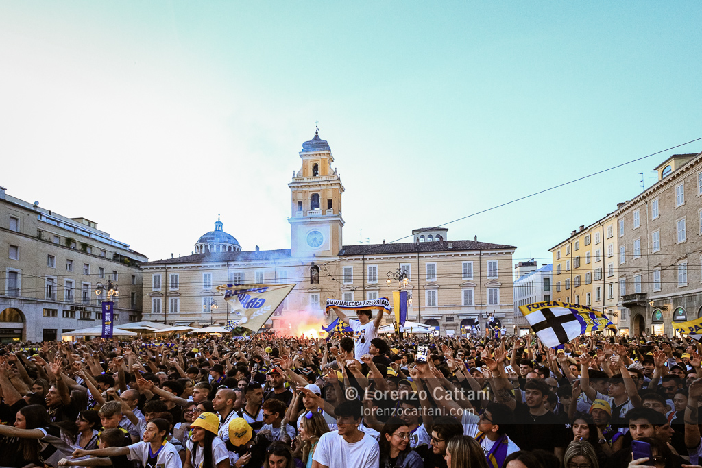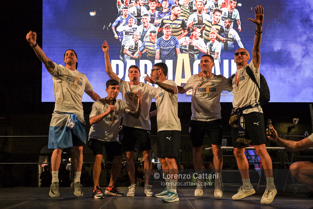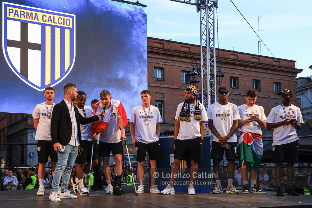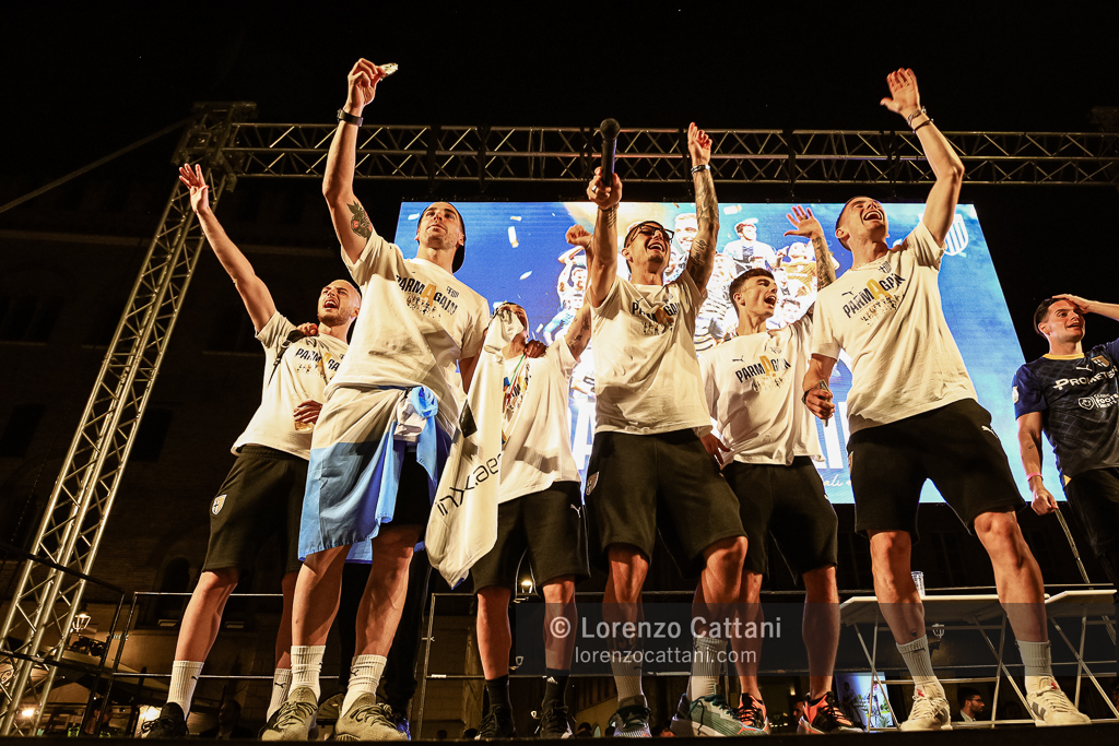 Dopo la Serie A acquisita matematicamente mercoledì 1 maggio 2024 e un primo accenno di celebrazioni, ecco la festa grande riservata al Parma Calcio, che ieri si è conquistato anche coppa e titolo di campione di Serie B.