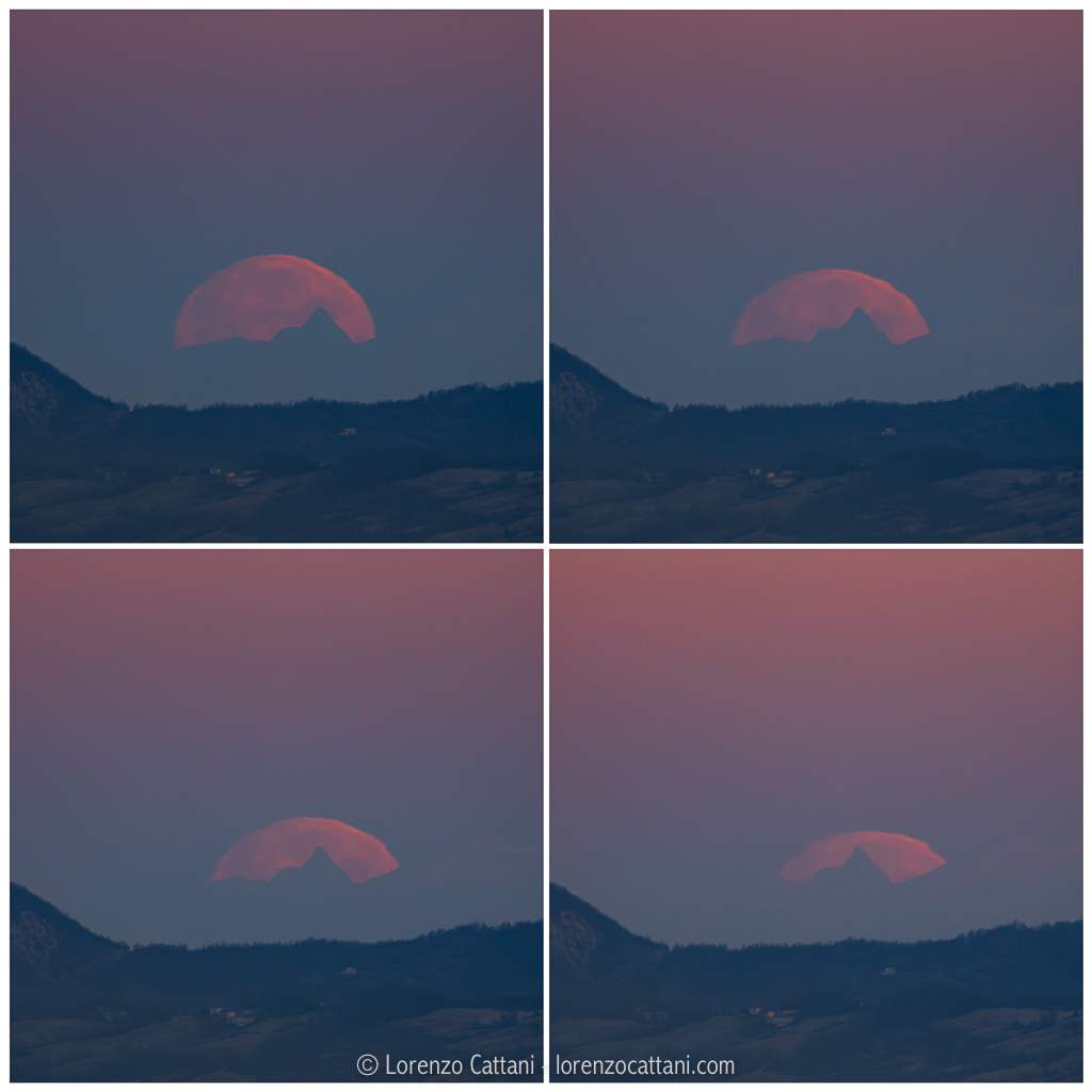 Nelle foto seguenti vengono riportati alcuni momenti del tramonto lunare, una composizione degli stessi e una foto in cui si riesce ad intravedere anche tutto il Monte Rosa.
