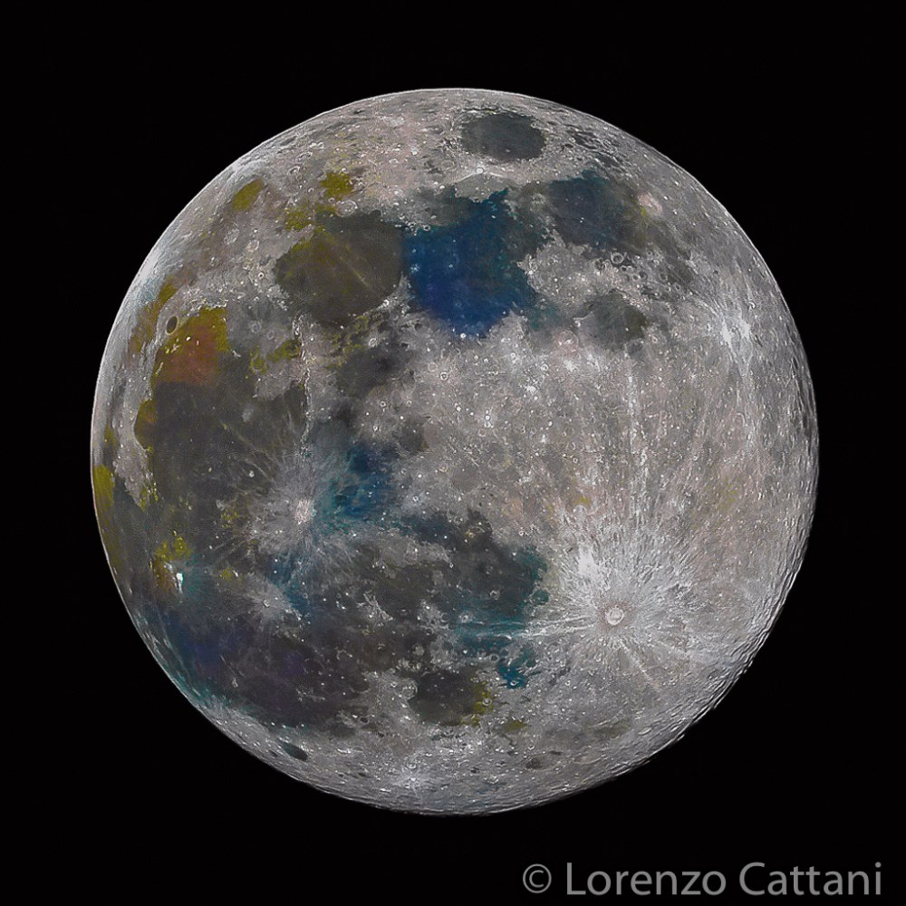 La Luna ha dei colori: la sua superficie selenica è composta da rocce simili a quelle terrestri e ci sono zone in cui la composizione chimica può cambiare, a seconda del tipo di minerali prevalenti. Ogni minerale ha una colorazione tipica; se varia l’abbondanza di un certo minerale, allora può cambiare, in modo leggero, il colore. Le differenze cromatiche sono molto tenui e visibili solo attraverso un’opportuna tecnica fotografica, la cosiddetta Mineral Moon.