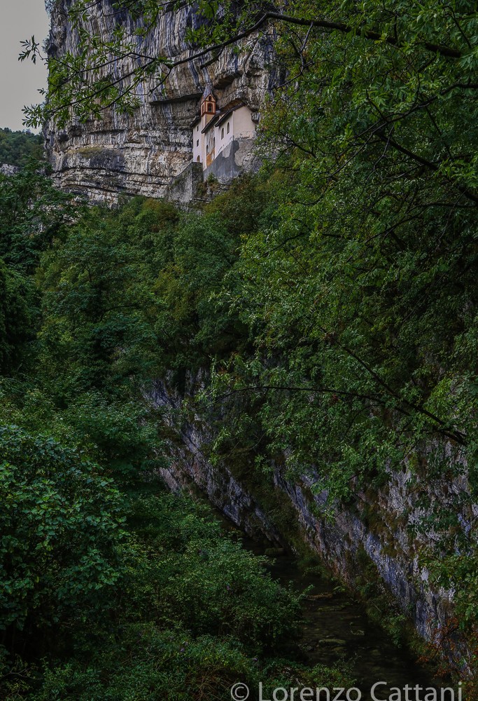 L’eremo di San Colombano, è un luogo eremitico situato nel comune di Trambileno, a 3 chilometri da Rovereto, sulla statale per Vicenza. Si raggiunge percorrendo a piedi un breve sentiero ed una scalinata di 102 gradini, scavati direttamente nella roccia. L’eremo è costruito a mezza altezza su uno strapiombo di circa 120 metri. Protetto dalle intemperie da un tetto naturale di roccia è dedicato al Santo che, secondo la leggenda, in veste di giovane cavaliere uccise il drago che provocava la morte di bambini battezzati nelle acque del sottostante torrente Leno. L’eremo sembra essere stato abitato sin dal 753; la data di costruzione della chiesetta e dell’annesso romitorio risale al X secolo.