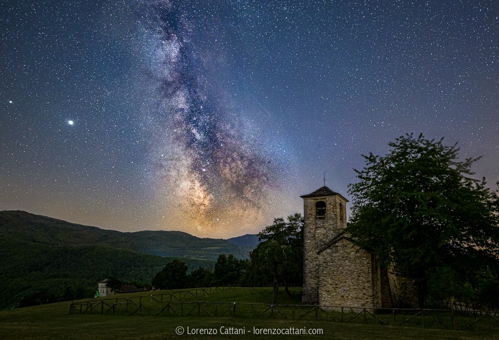 Sulla sinistra si distinguono nettamente i pianeti Saturno e Giove. Doppia esposizione: Pieve ISO 800; f/2,8; 240 sec @ 17 mm Via Lattea ISO 800; f/2,8; 120 sec @ 17 mm con astroinseguitore Minitrack LX2. Condividi:TweetMi piace Caricamento...