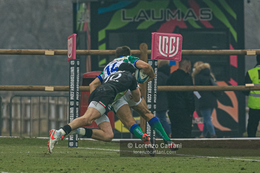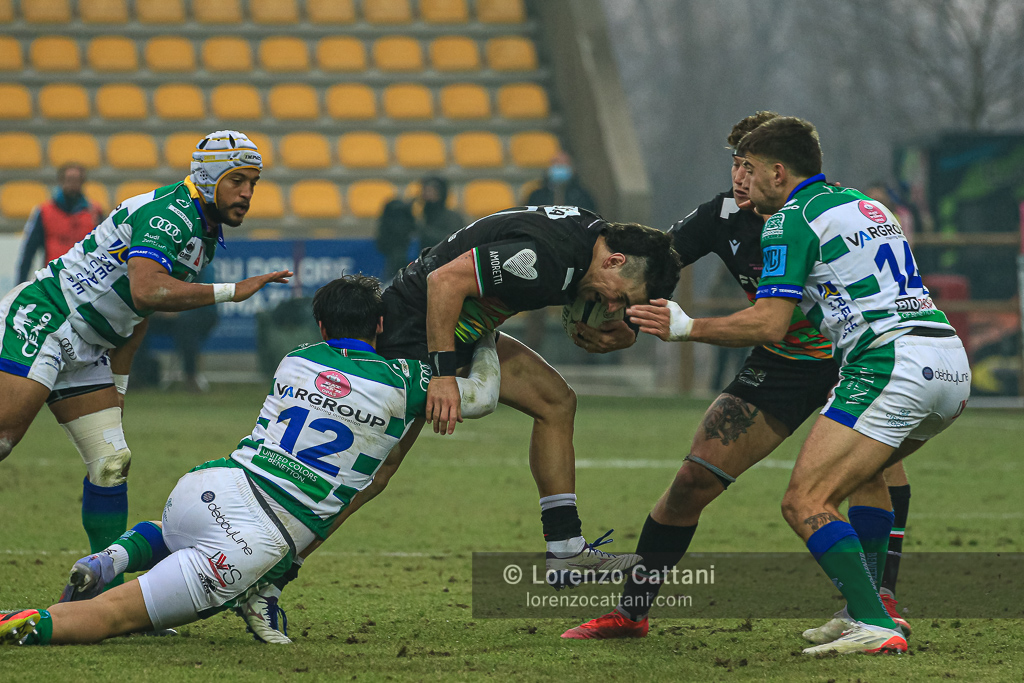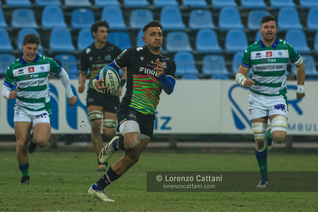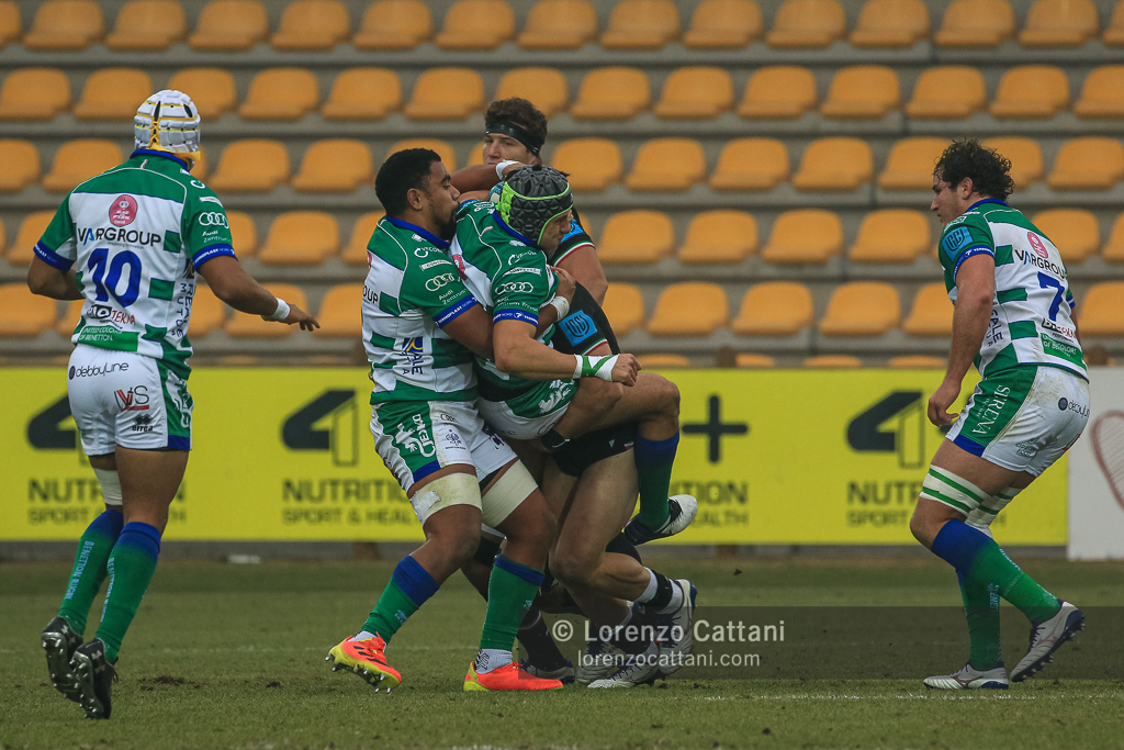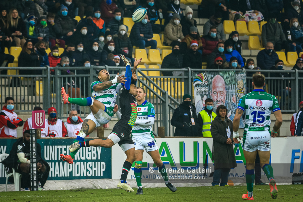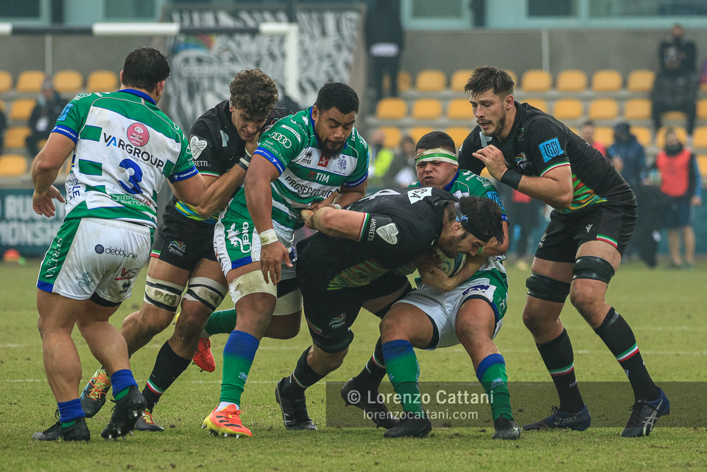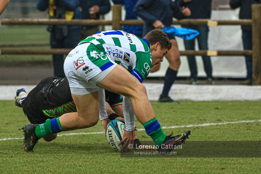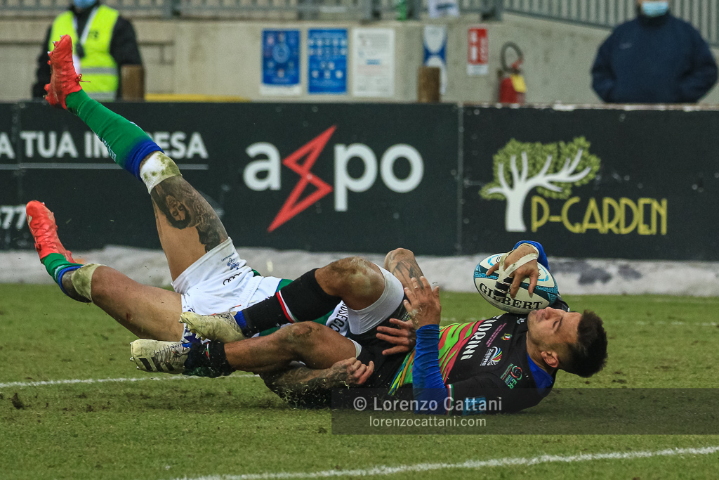 Marcatori: 5’ cp Smith (0-3), 17’ m. Ruzza tr Smih (0-10), 32’ m. Pettinelli tr Smith (0-17); 35’ m. Menoncello tr Smith (0-24); s.t. 54’ cp Smith (0-27), 55’ m. Brex tr Smith (0-34), 64’ m. Boni tr Canna (7-34), 67’ m. Bisegni tr O’Malley (14-34), 73’ m. Marin (14-39)