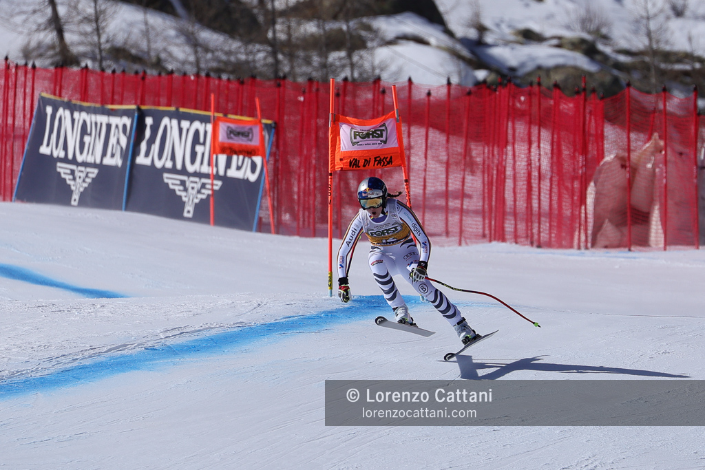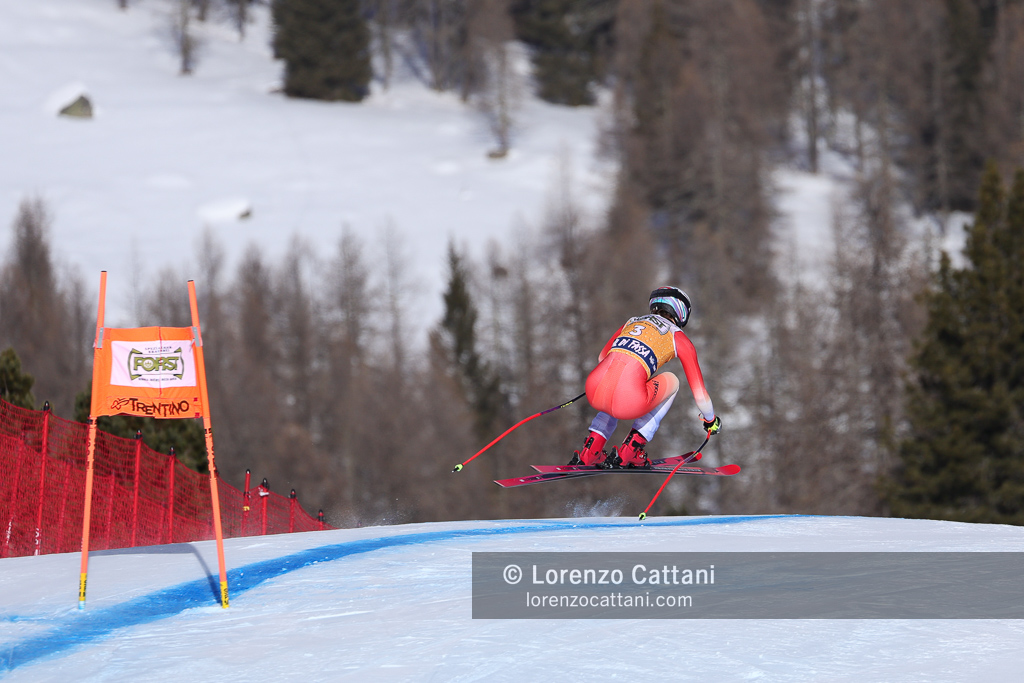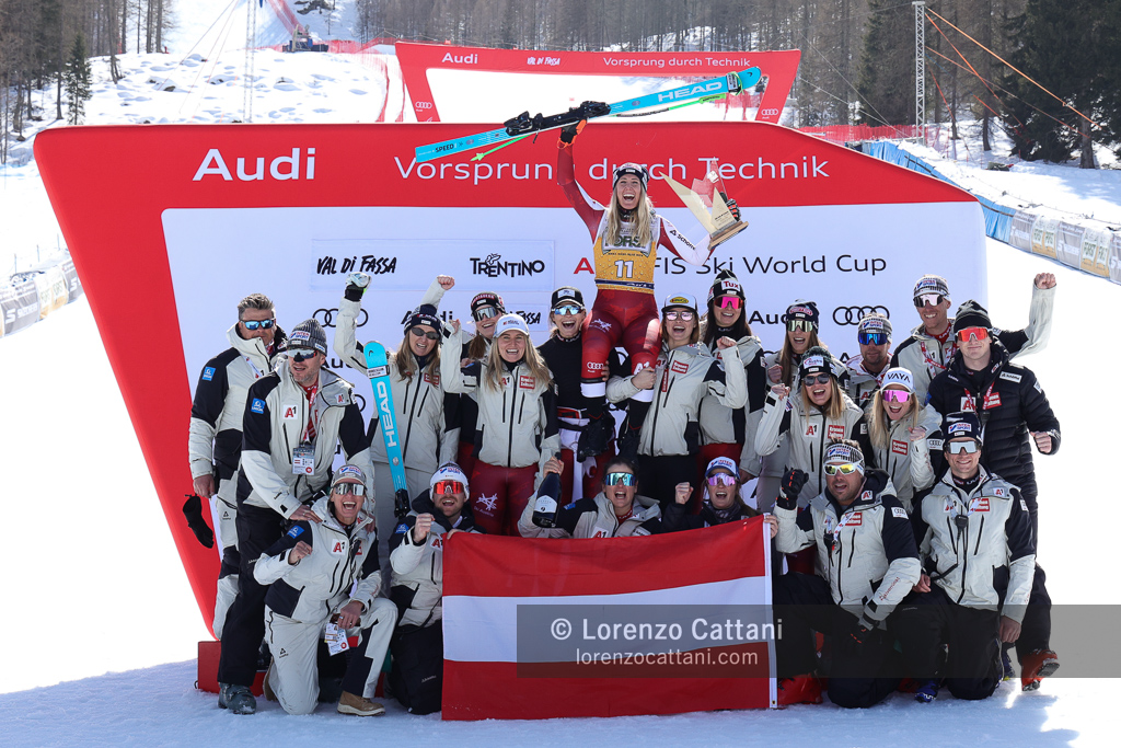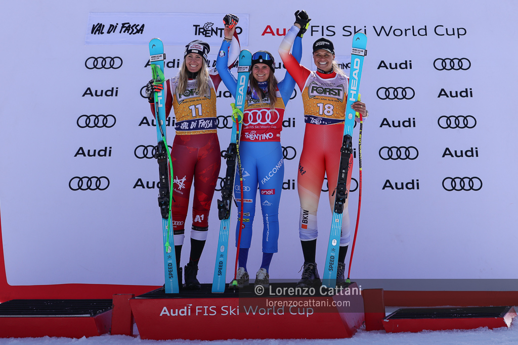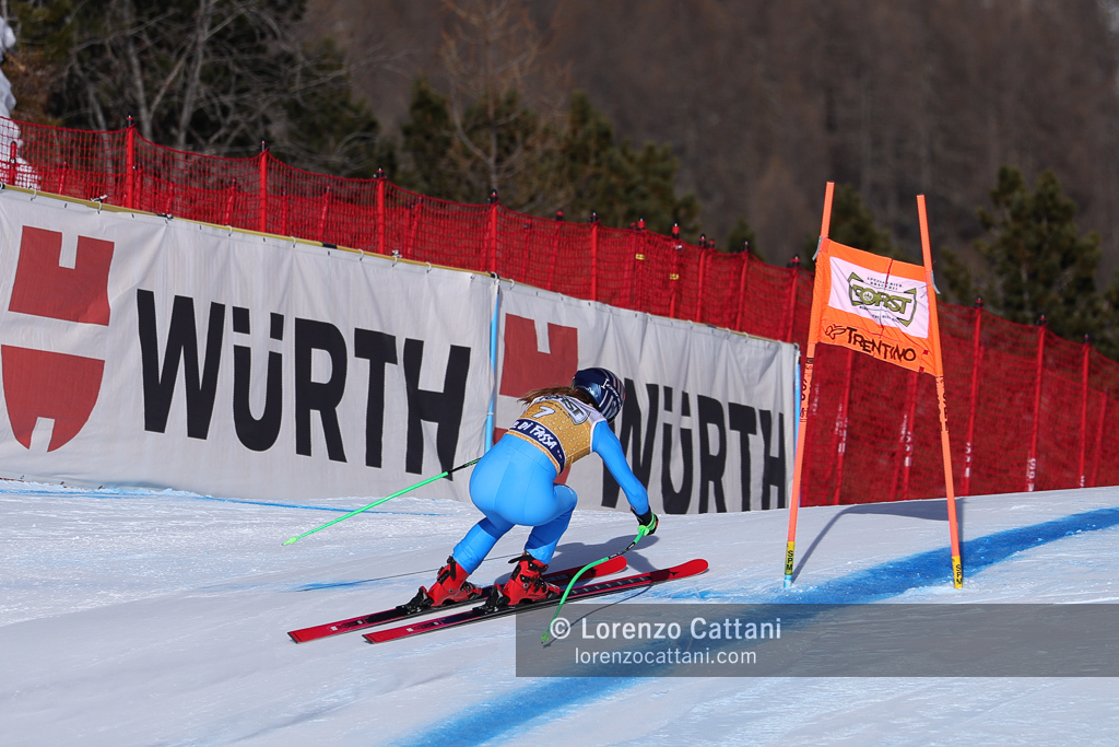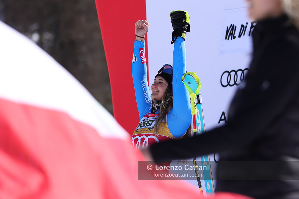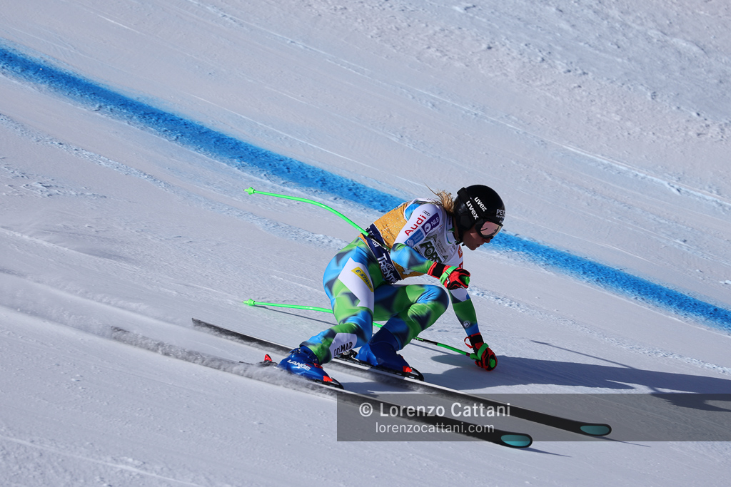Nella discesa libera del 7 marzo in Val di Fassa trionfa ancora Laura Pirovano, che sulla pista La VolatA firma il bis nel weekend vincendo con il tempo di 1:20.91. L’azzurra batte per un solo centesimo l’austriaca Cornelia Hütter, mentre la svizzera Corinne Suter chiude terza a +0.05, in una gara tiratissima decisa sul filo dei centesimi.