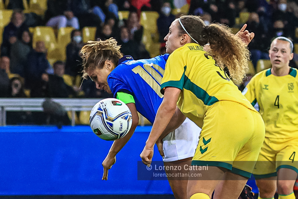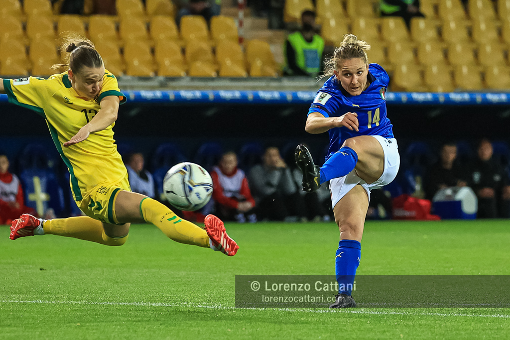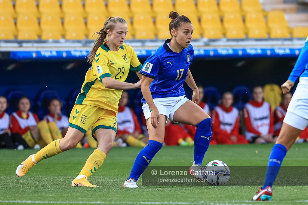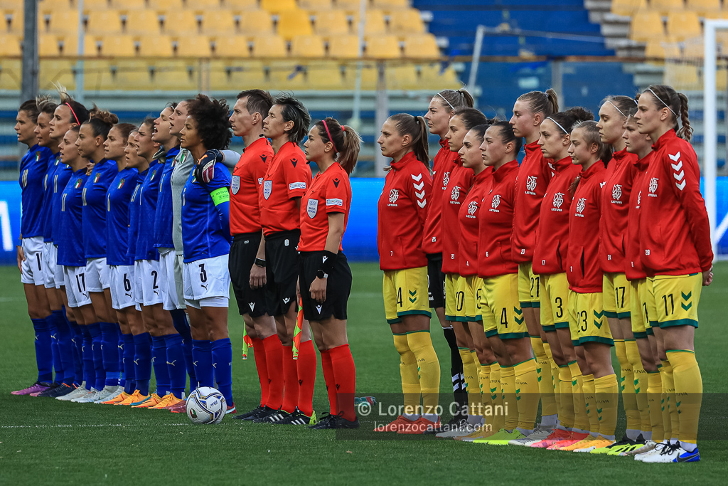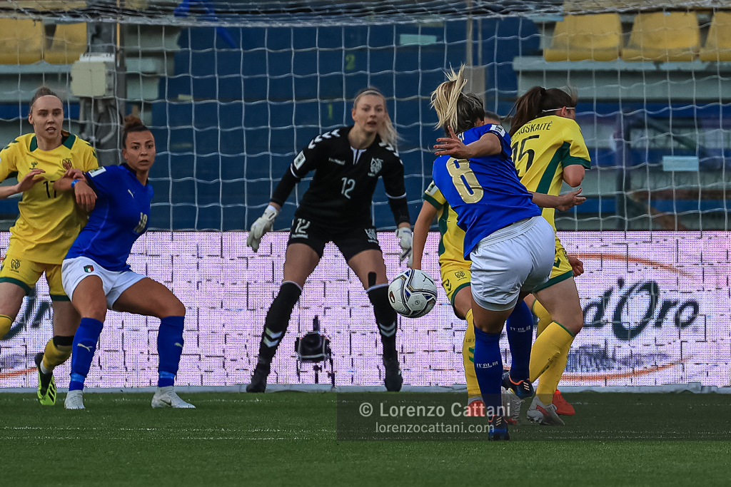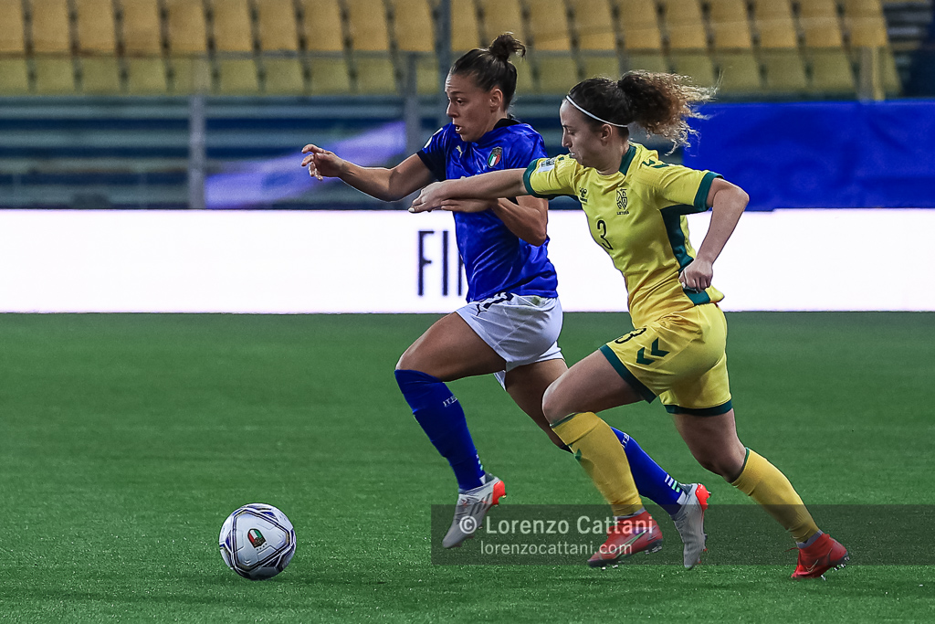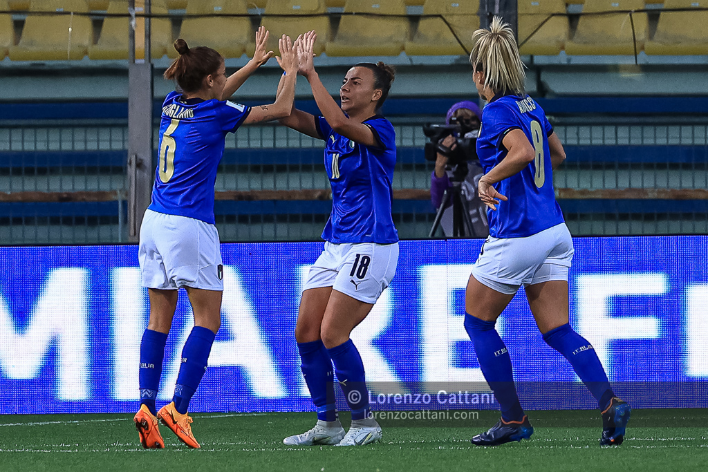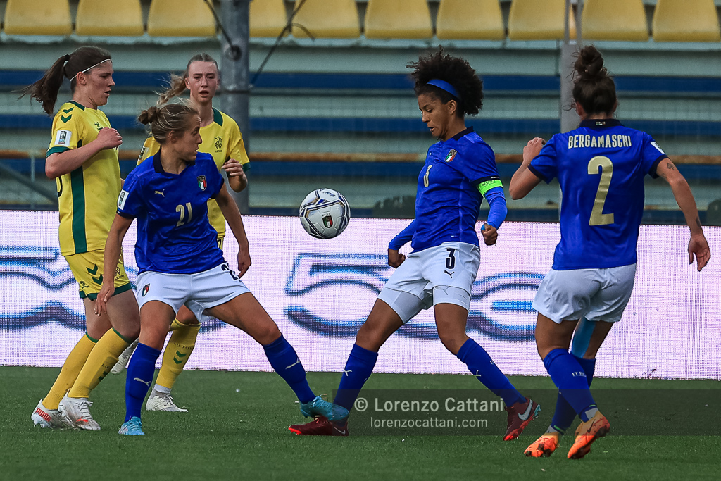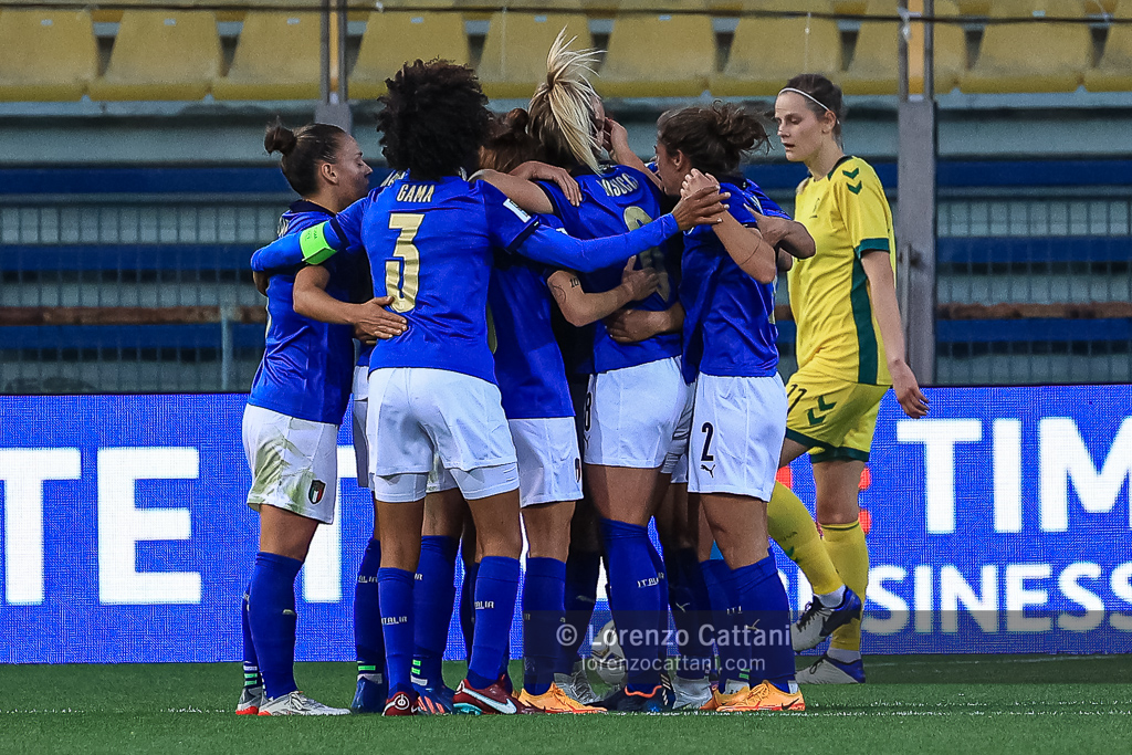 Prosegue con un’altra convincente vittoria il cammino della Nazionale Femminile nelle qualificazioni mondiali. Al Tardini di Parma le Azzurre superano con un perentorio 7-0 la Lituania, regalando ai circa 2500 tifosi presenti sugli spalti una serata di gol, divertimento e grandi giocate. Un monologo iniziato dopo appena un minuto con la rete di Caruso, che ha dato il via alla straripante sinfonia azzurra: al festival del gol si sono iscritte anche Bergamaschi, autrice come la centrocampista bianconera di una doppietta, un’ispiratissima Cernoia e nel finale le subentrate Sabatino e Bonetti.