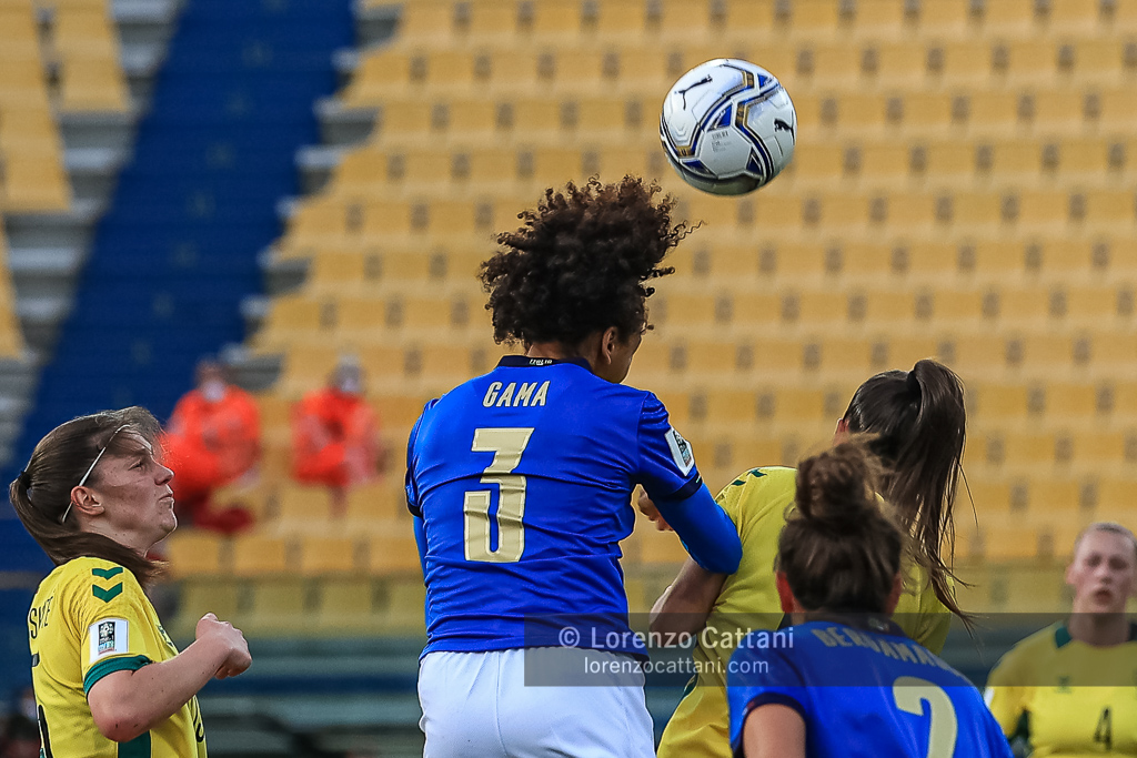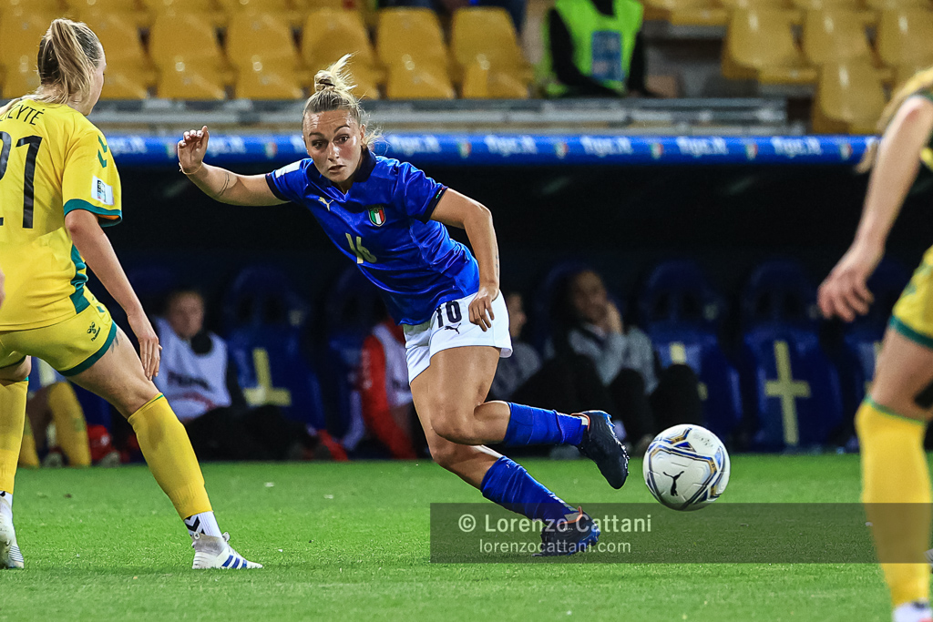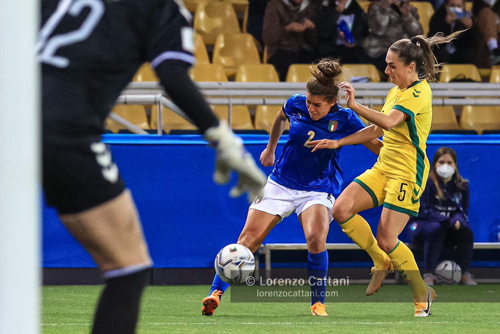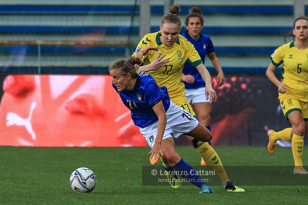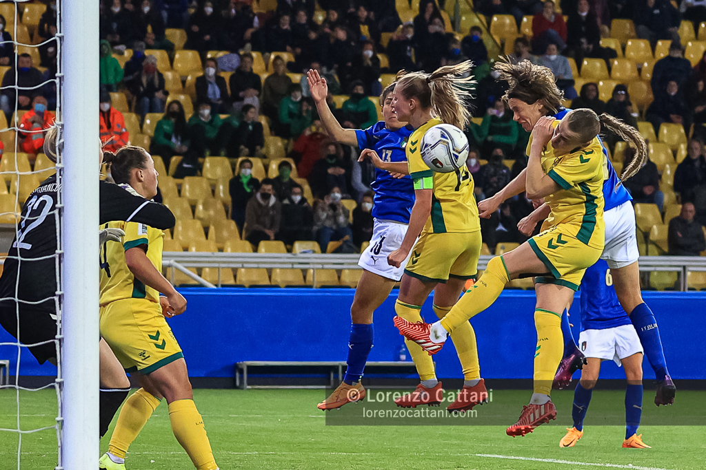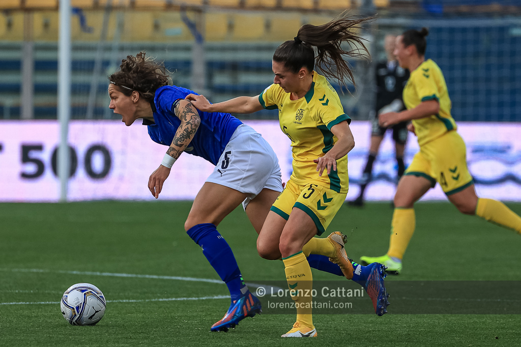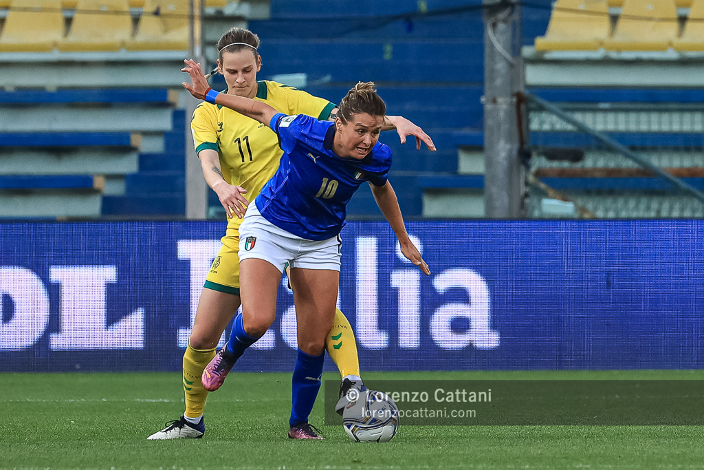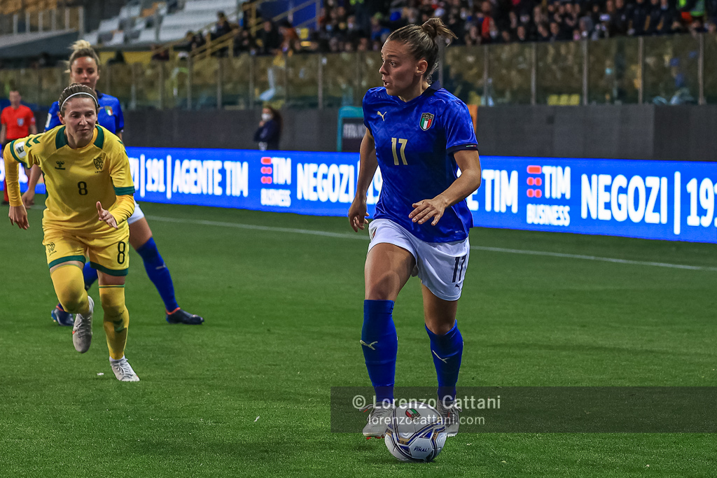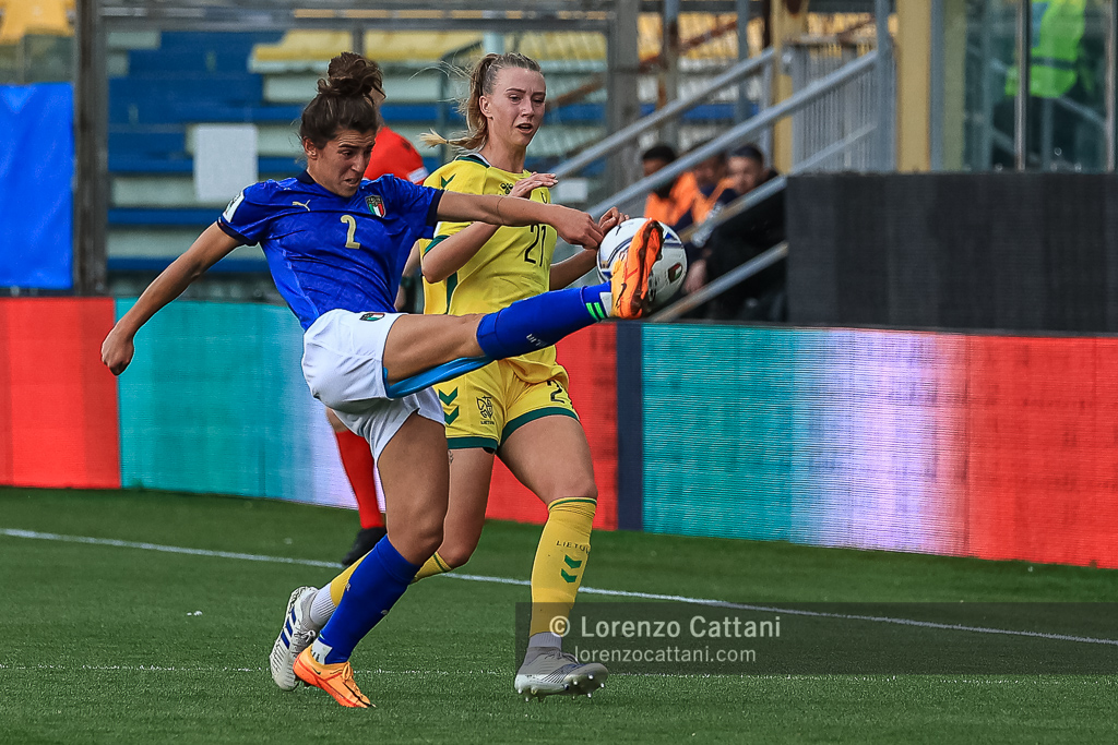 Prosegue con un’altra convincente vittoria il cammino della Nazionale Femminile nelle qualificazioni mondiali. Al Tardini di Parma le Azzurre superano con un perentorio 7-0 la Lituania, regalando ai circa 2500 tifosi presenti sugli spalti una serata di gol, divertimento e grandi giocate. Un monologo iniziato dopo appena un minuto con la rete di Caruso, che ha dato il via alla straripante sinfonia azzurra: al festival del gol si sono iscritte anche Bergamaschi, autrice come la centrocampista bianconera di una doppietta, un’ispiratissima Cernoia e nel finale le subentrate Sabatino e Bonetti.