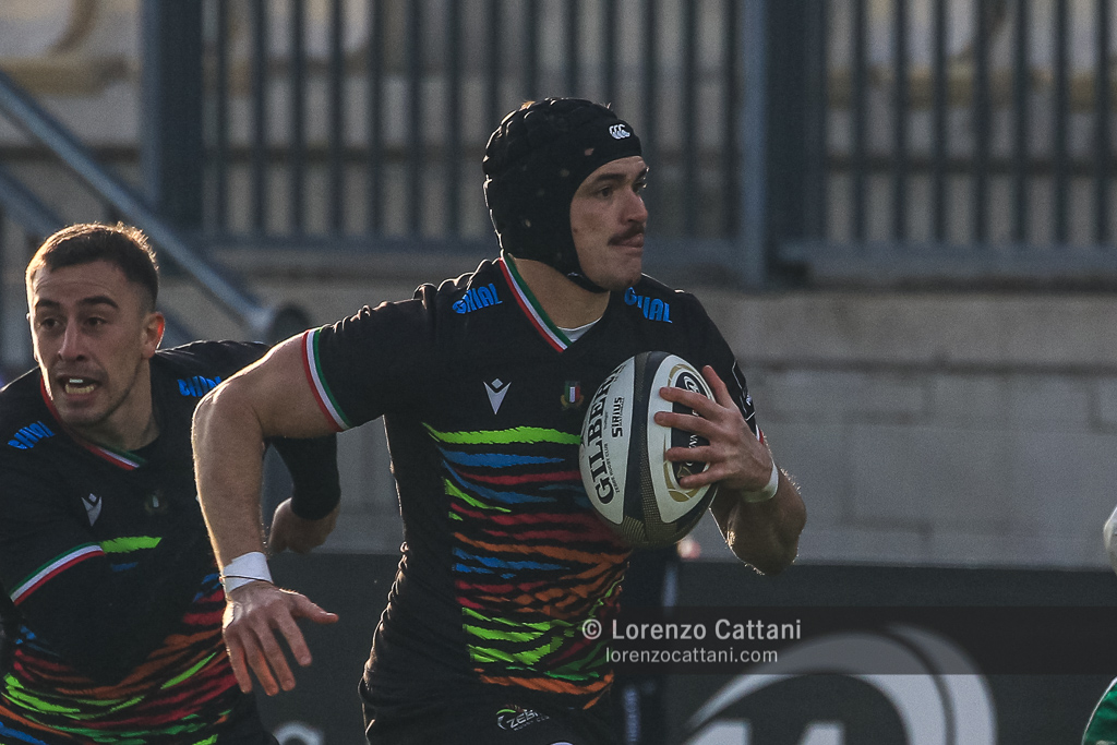 Marcatori: 14’ cp Garbisi (0-3), 26’ cp Canna (3-3); 39’ cp Garbisi (3-6), 40’ Biondelli (8-6); s.t. 50’ cp Canna (11-6), 53’ Mbandà (16-6), 62’ Lucchesi (16-11), 66’ Lamaro tr Garbisi (16-18), 73’ cp Rizzi (19-18), 78’ cp Rizzi (22-18)