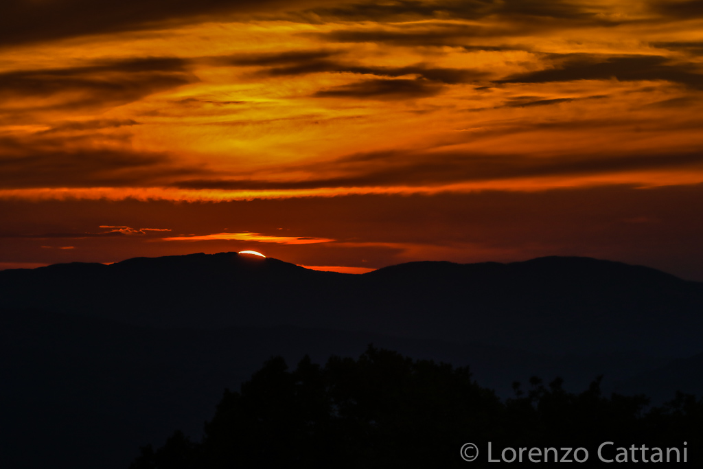 Nell’attesa dell’alba lunare, è stato possibile godere di un magnifico tramonto, ovviamente diametralmente opposto al punto di osservazione della Luna e ad un allineamento palnetario Venere – Giove – Saturno – Marte.
