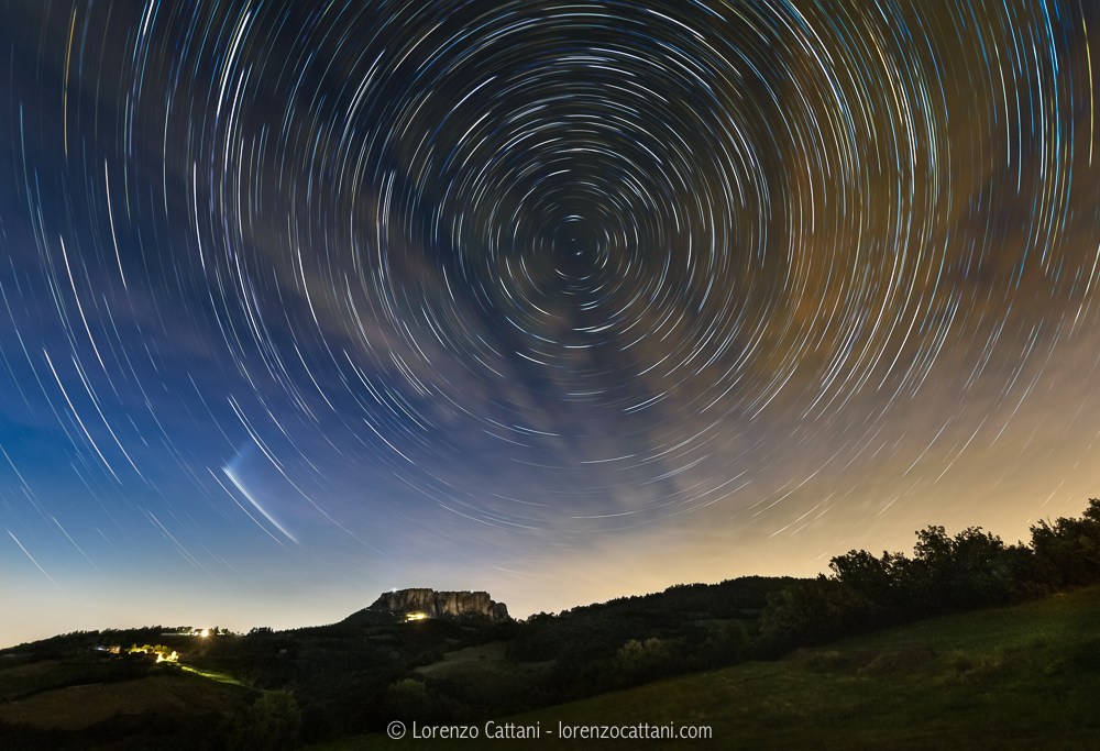 Alla sinistra della Pietra è distinguibile la scia creata dalla cometa C/2020 F3 (NEOWISE). Lo scatto è stato effettuato il 18/7/2020 dalle ore 22:24 alle ore 00:20. Condividi:TweetMi piace Caricamento...